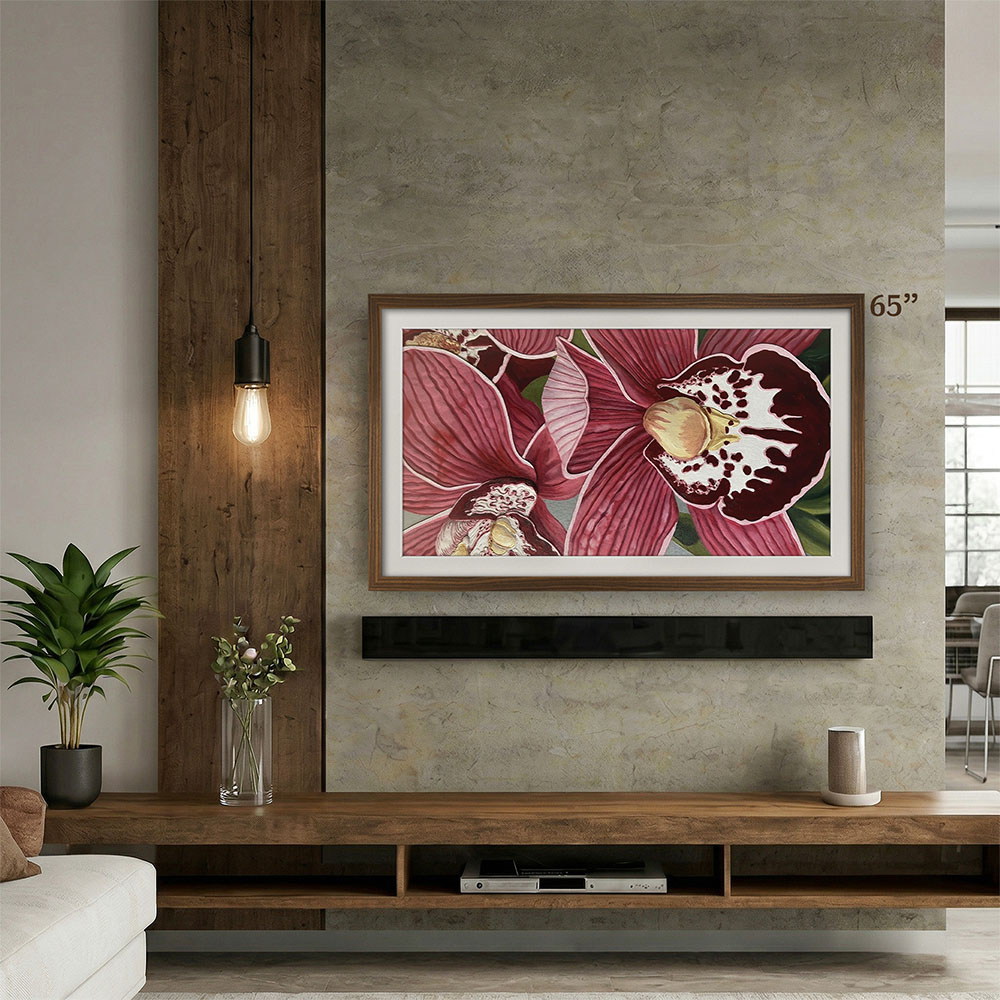 Upgrade your Samsung The Frame (2017-2025, 32”-85”) or TCL NXTFrame (A300W & A300PRO, 55”-85”) with a luxury wooden TV frame by EventFrame. This TV bezel adds elegance to modern, rustic, and contemporary interiors.