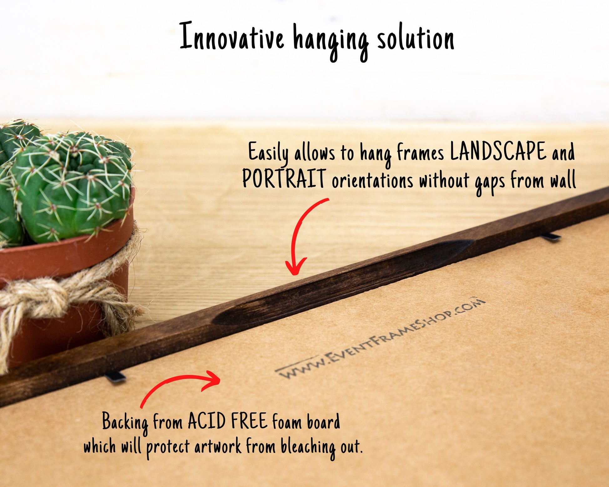 ★ Innovative hanging solution. Easily allows to hang frames without gaps from wall.